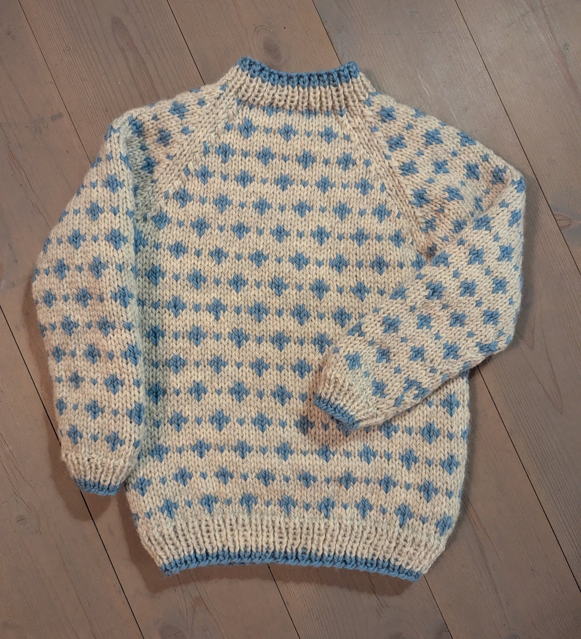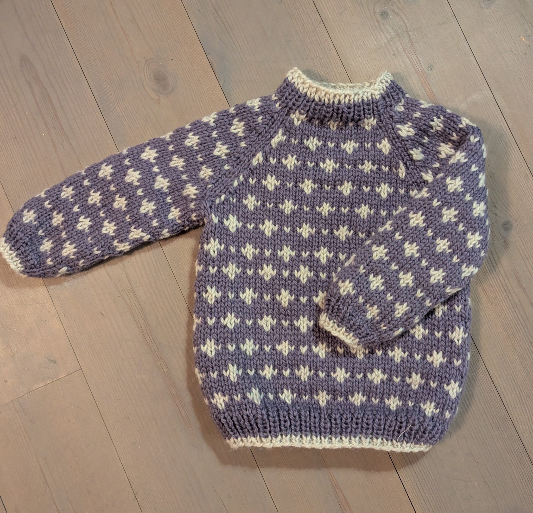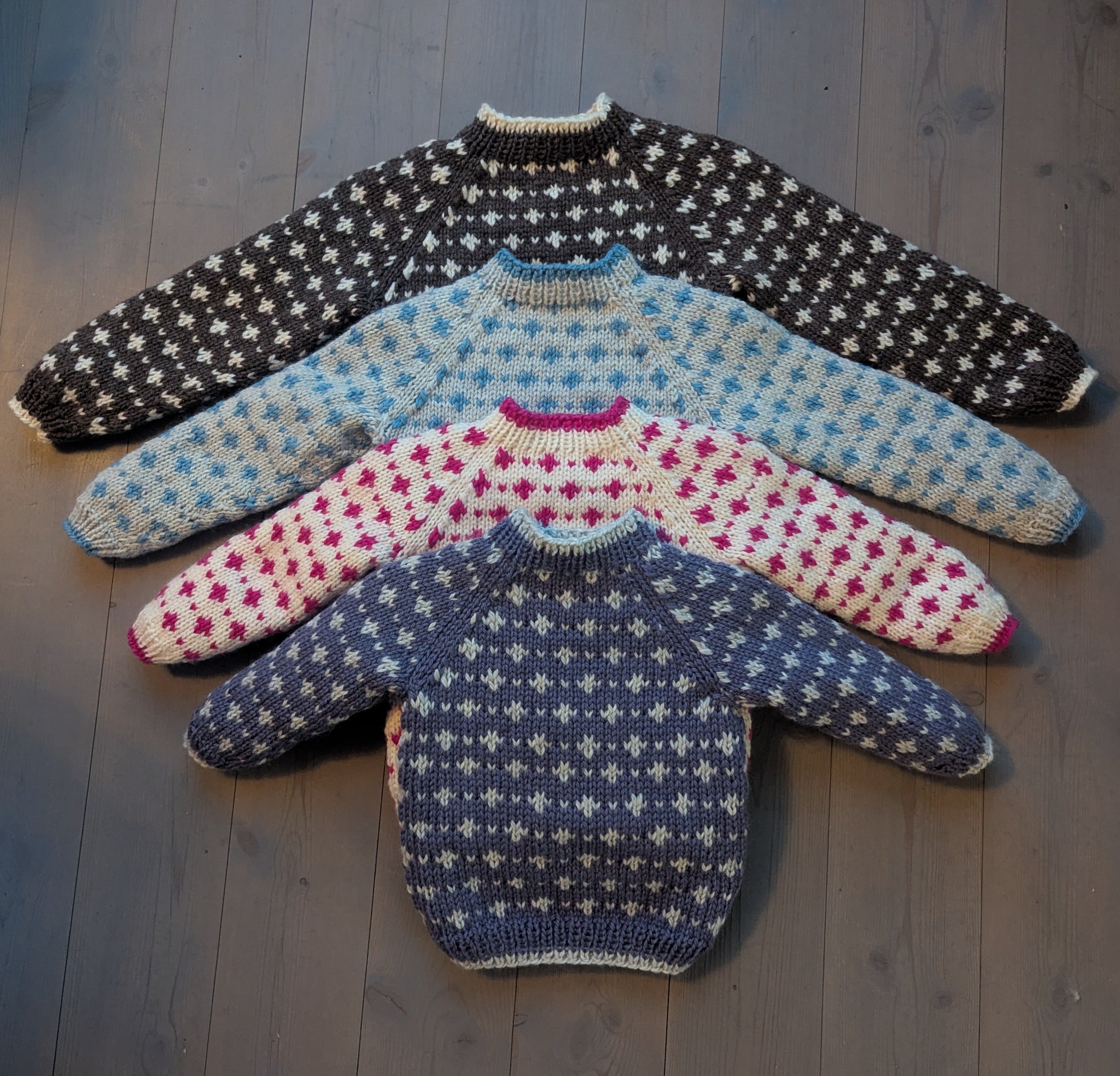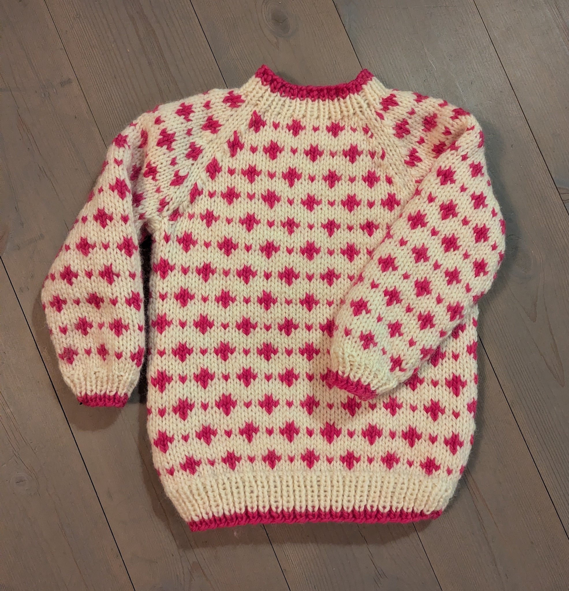 Genseren strikkes i Viking Hobbygarn (100% ull). Raglanfelling,strikkes nedenfra og opp. Enkel oppskrift å følge.